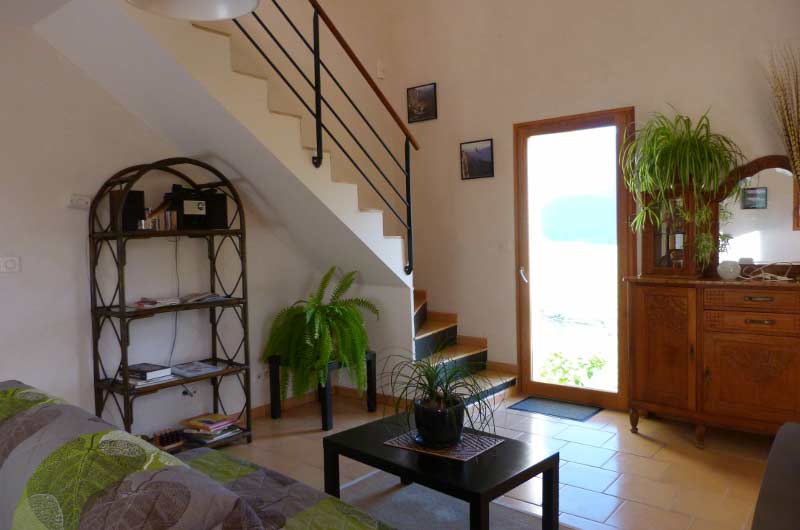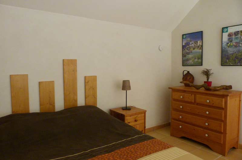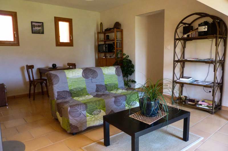 Elle est composée de deux chambres: une en mezzanine (lit en 140), et une en RDC (deux lits en 90), d'un salon équipé d'un canapé convertible et de sanitaires privatifs.
